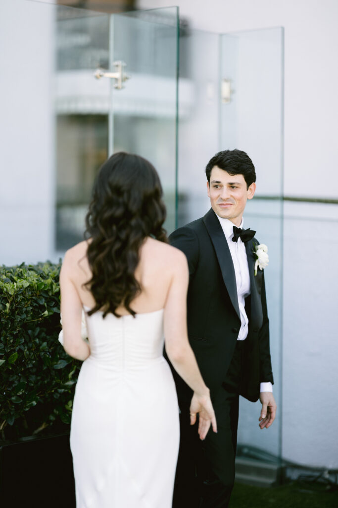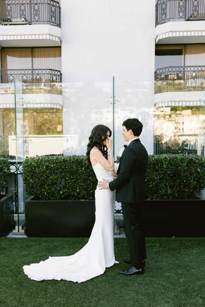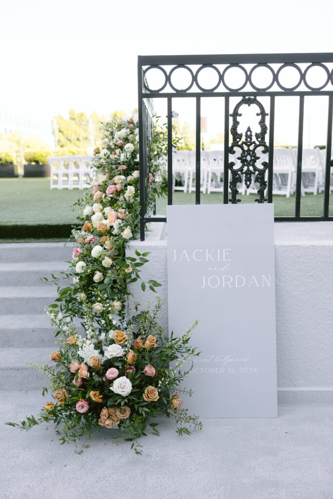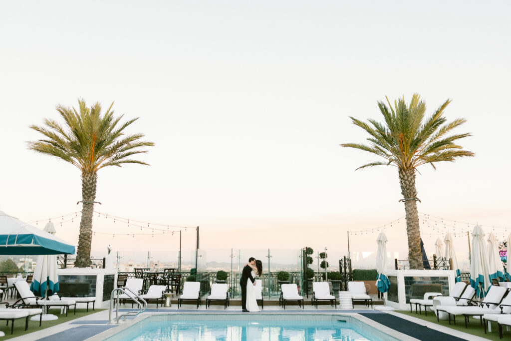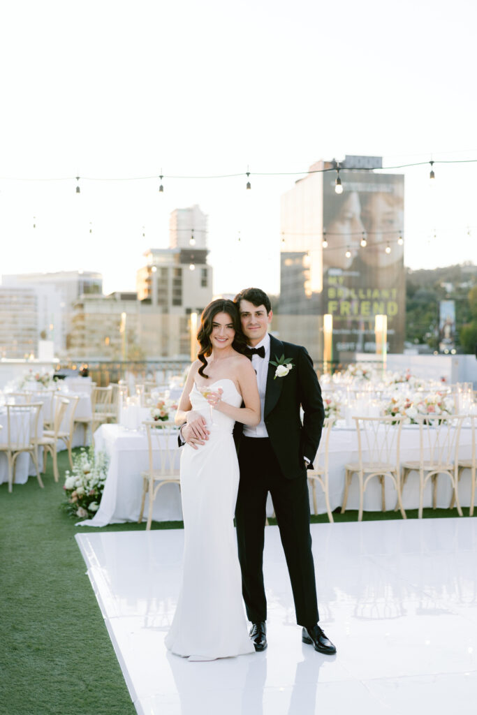 From the very beginning, Jackie and Jordan’s wedding at The London West Hollywood felt chic and deeply personal. High above Los Angeles, the rooftop offered sweeping views of the skyline. As the afternoon shifted into golden hour, soft light filled the space and changed the mood entirely. Because of that glow, everything felt calm, intentional, and warm.