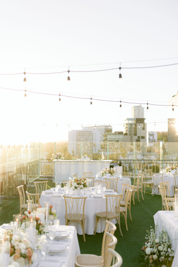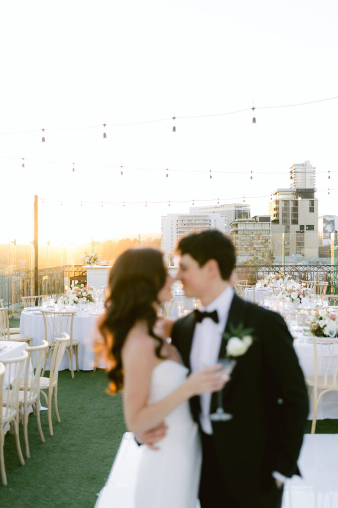 Across the space, details from MTB Event Rentals and Mela Design Co. added character without ever feeling overdone. Meanwhile, hair and makeup by Cheek to Cheek Artistry looked effortless and polished all day long. As the sun dipped below the skyline, string lights came on and the city lights slowly took over. Shortly after, guests filled the dance floor and celebrated under the stars.