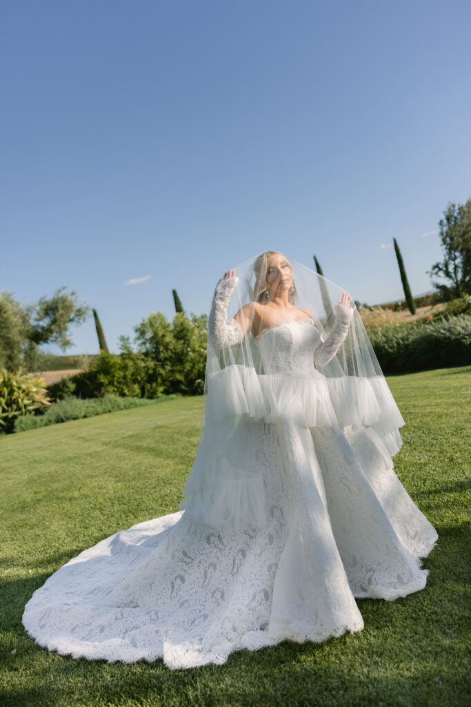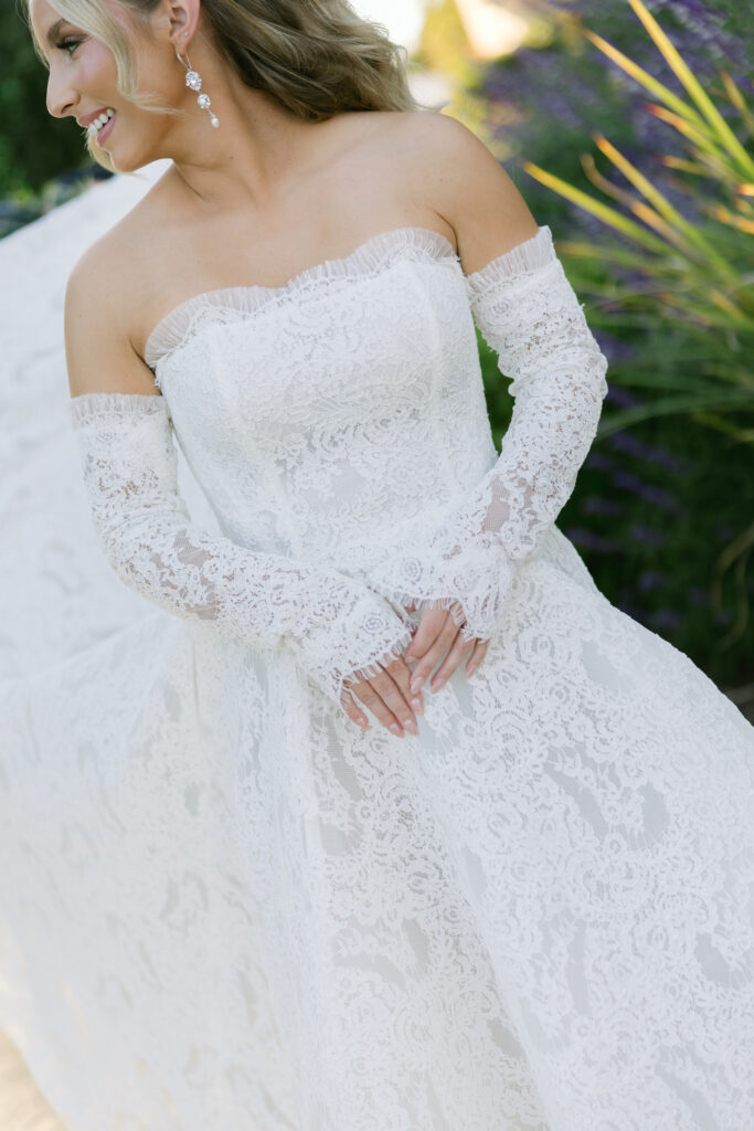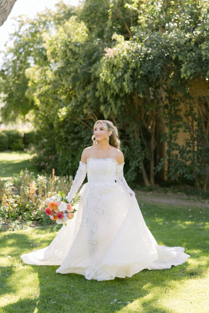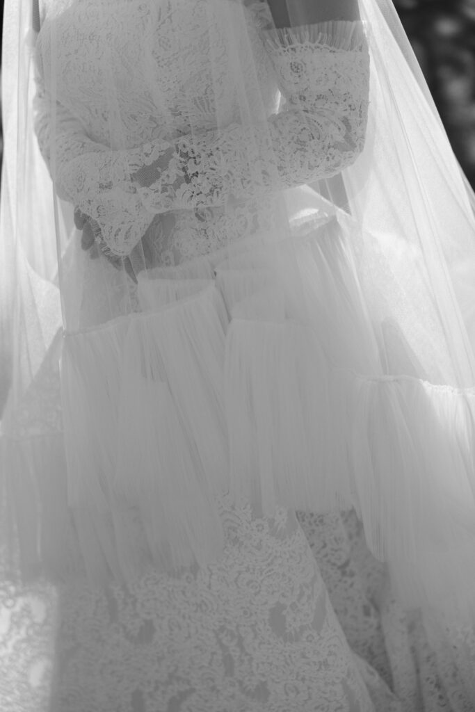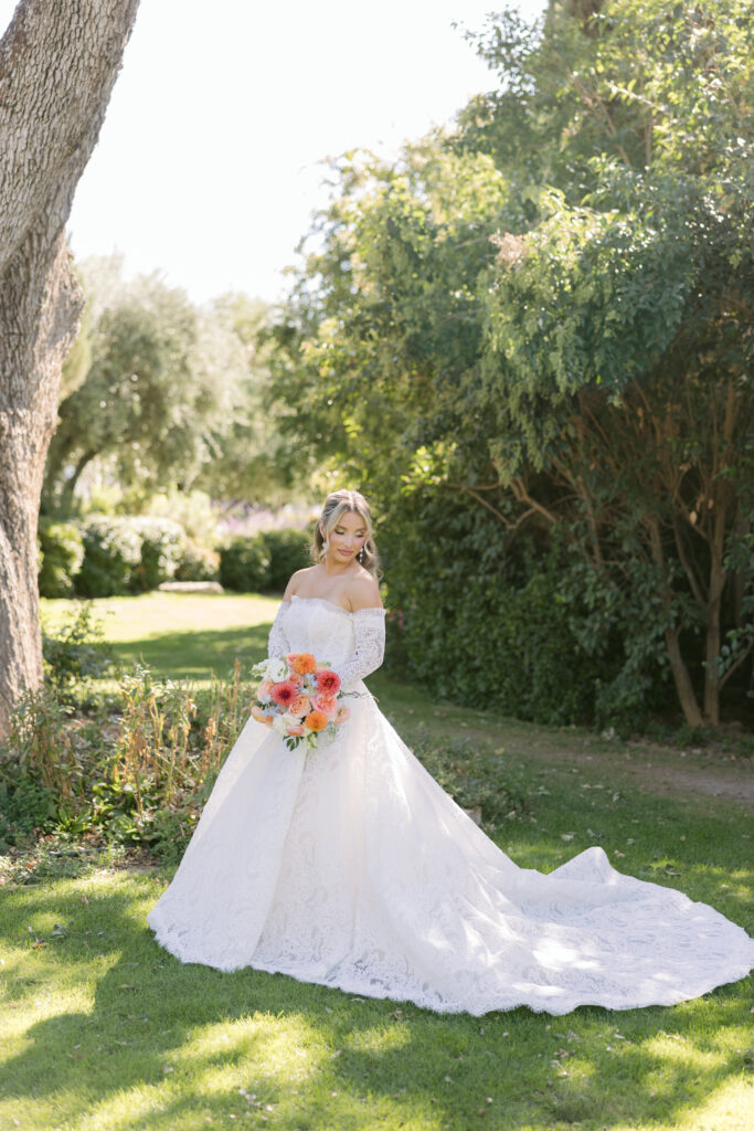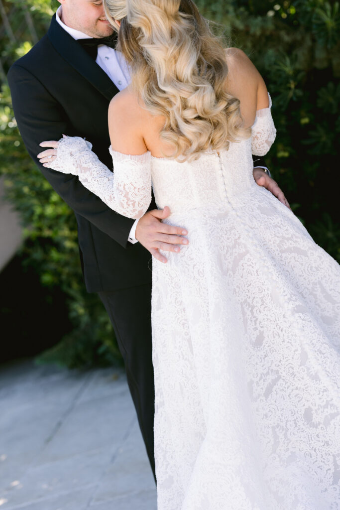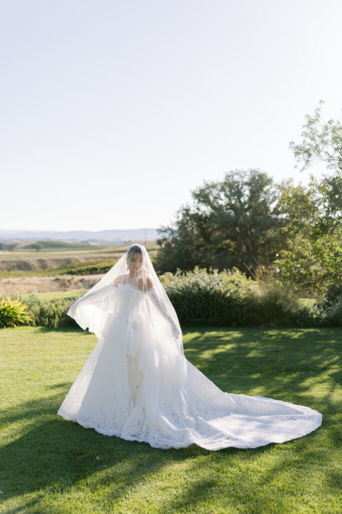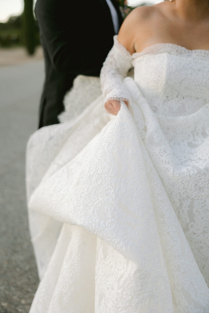 I was completely obsessed with the bride’s gown by Rita Vinieris from Kinsley Couture Bridal. The movement, the structure, the softness, everything about it complemented the setting perfectly.