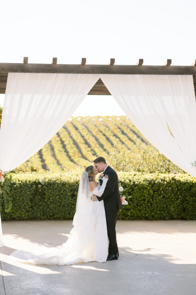 For beauty, the bride worked with The Queen’s Bees Hair (https://thequeensbees.com/) alongside Shelby Henry MUA (https://www.shelbyhenrymua.com/), creating a soft and timeless look that photographed beautifully in the vineyard light.